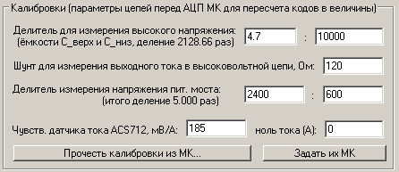Кнопка «Прочесть калибровки из МК...» позволяется показать в программе параметры калибровок, которые используются МК.