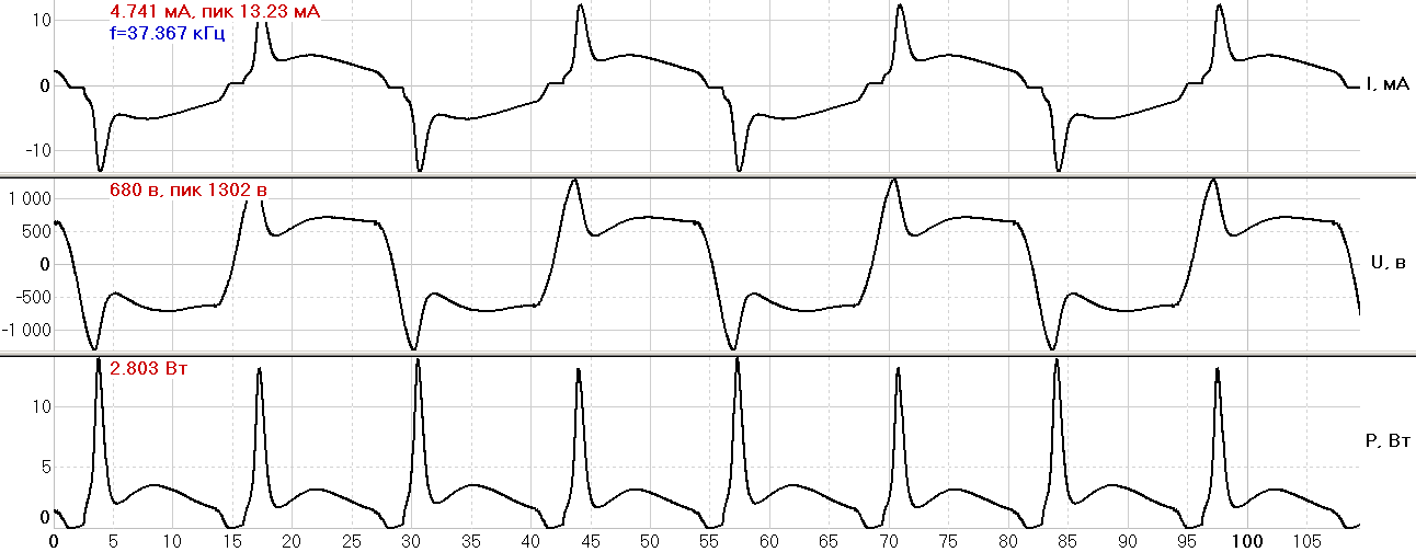 0 f=200.000кГц I=9.488 мА пик 13.651 U=2423 в пик 3486 P=15.599 Вт.txt